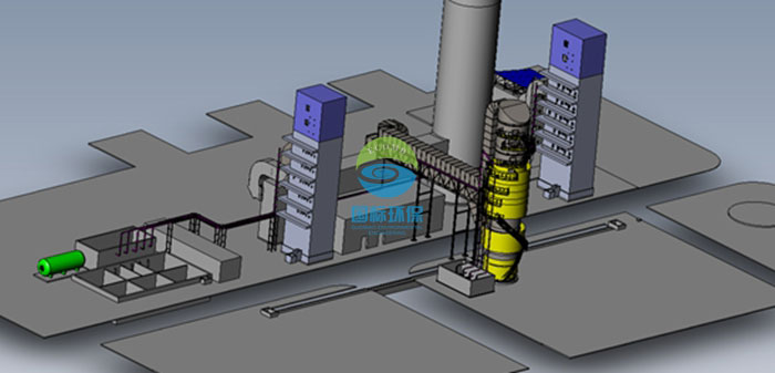 本項(xiàng)目脫硫?qū)崿F(xiàn)超清潔排放。我公司利用其廠區(qū)已有印染廠廢水堿性特點(diǎn),提出了單塔雙回旋增效脫硫工藝,在一座脫硫塔內(nèi)實(shí)現(xiàn)高PH、低PH脫硫液的雙噴淋,在實(shí)現(xiàn)煙氣充分脫硫的的同時,廢水以較低PH值回流污水廠。