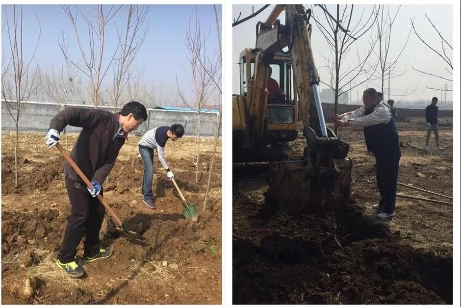活動開始前,各部門分工明確,活動開始后,公司領(lǐng)導(dǎo)積極帶頭,這一舉動點燃了大家的干勁和激情。勞動現(xiàn)場不分職務(wù)高低,大家打成一片,三四人一組,將一株株樹苗栽下。在初春的暖陽里,挖機前面挖坑,大伙后面接力趕工,不一會兒就熱的滿頭大汗。但大伙植樹的熱情高漲,解開扣子、擼起袖子、齊心協(xié)力,到處是熱火朝天的勞動場面。